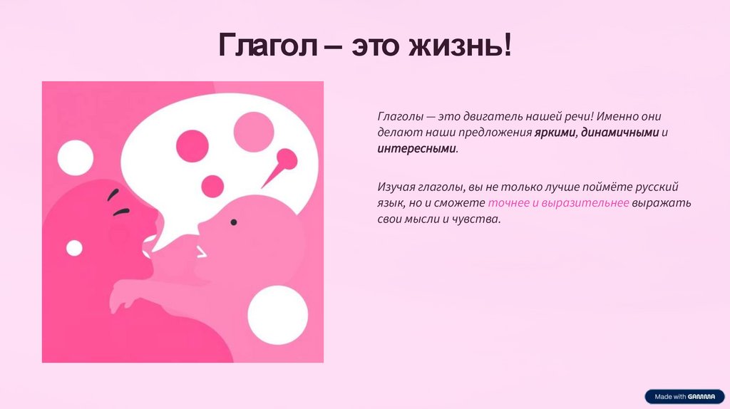 Глагол – это жизнь!Глаголы — это двигатель нашей речи! Именно они
