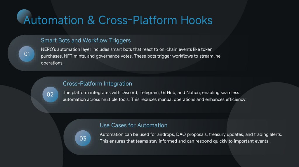 NERO's automation layer includes smart bots that react to on-chain events like token