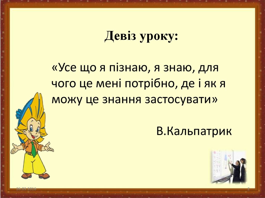 Девіз уроку:«Усе що я пізнаю, я знаю, для