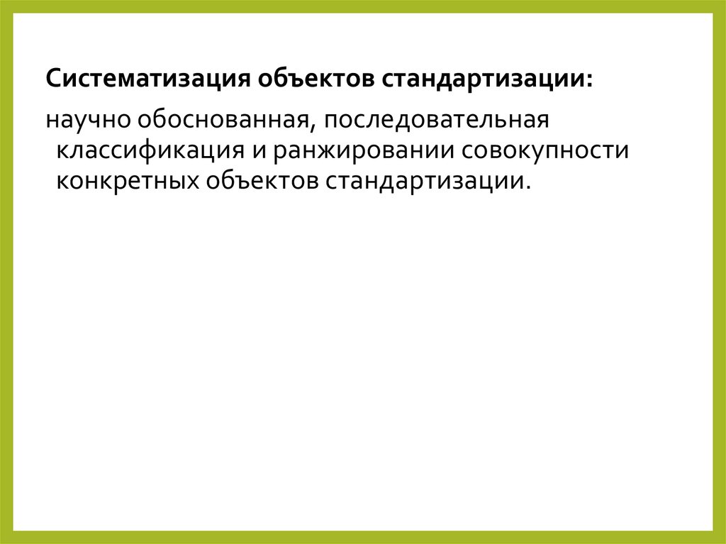 • Понятие стандартизации, объекты стандартизации. Цели ипринципы стандартизации