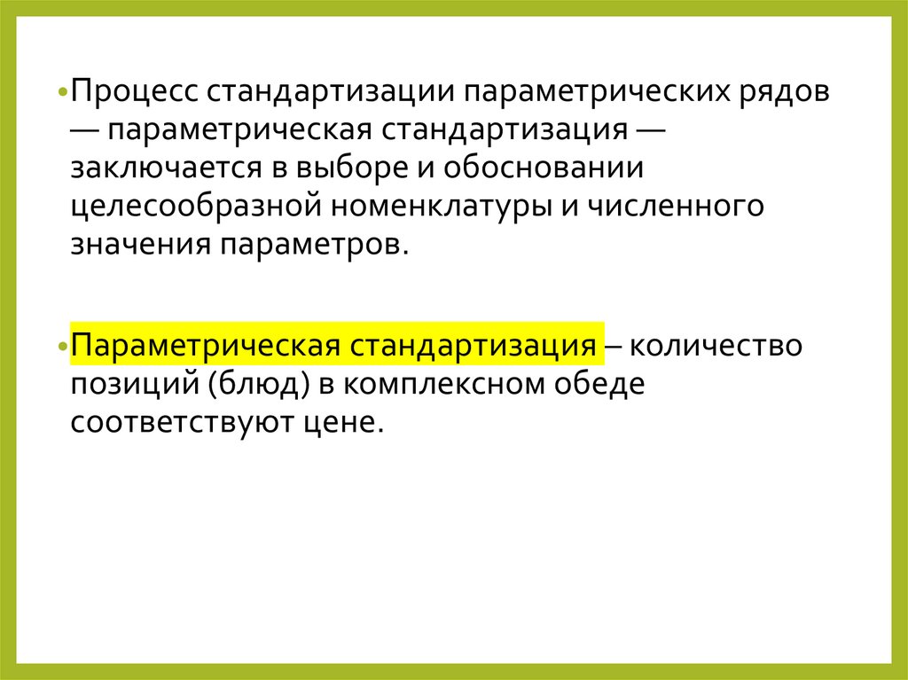 • Процесс стандартизации параметрических рядов— параметрическая стандартизация —