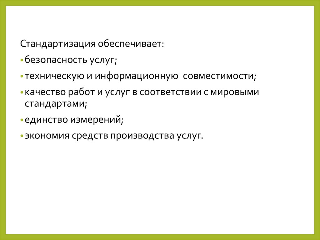• Основной целью унификации являетсяустранение неоправданного многообразия услуг,