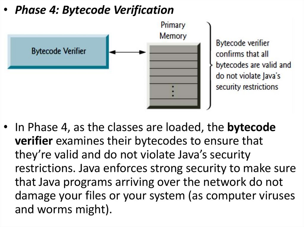 • Phase 4: Bytecode Verification• In Phase 4, as the classes are loaded, the bytecode