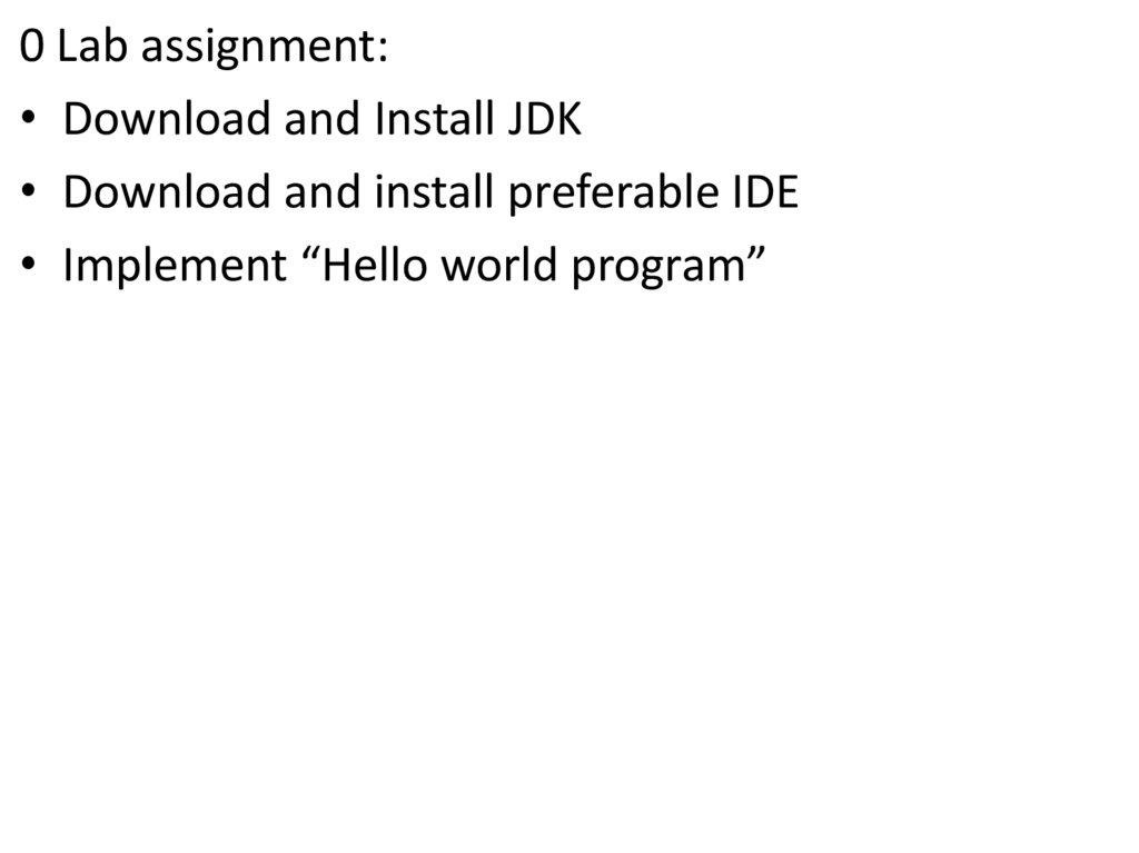0 Lab assignment:• Download and Install JDK