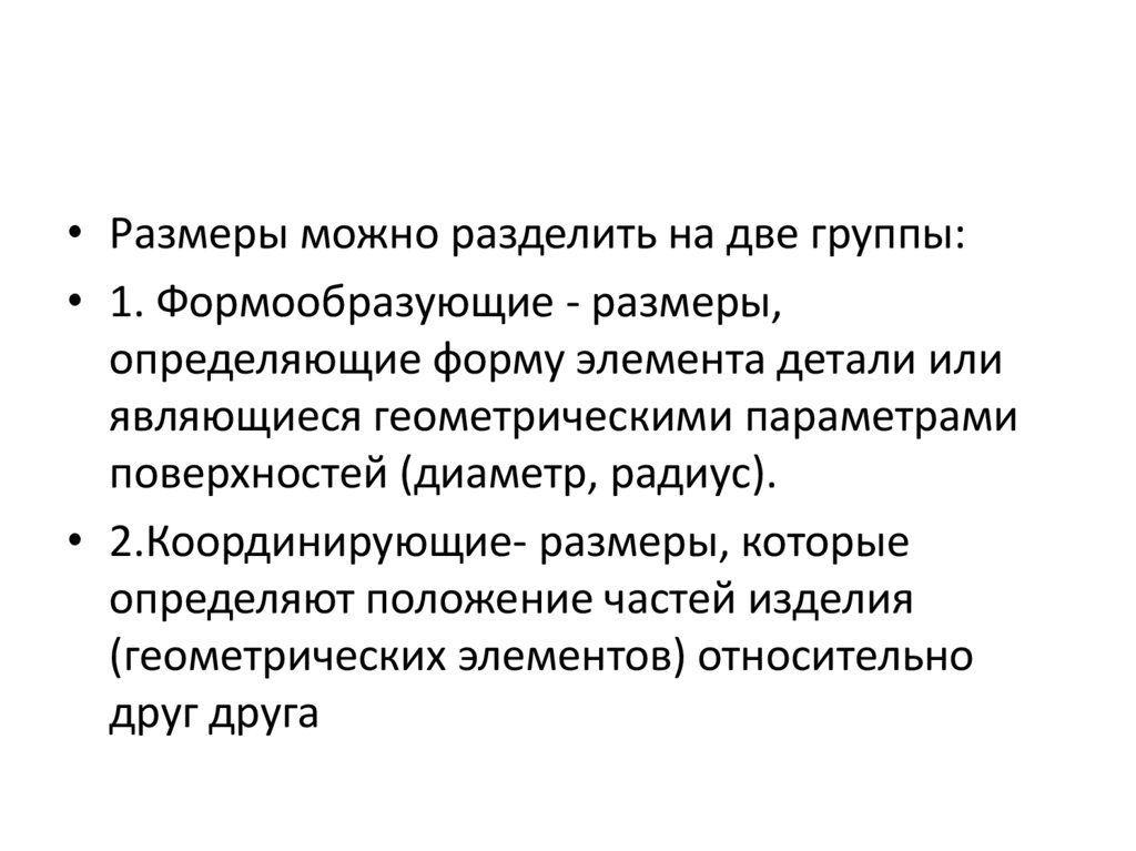 • Группа размеров, определяющихгеометрию отдельных элементов детали