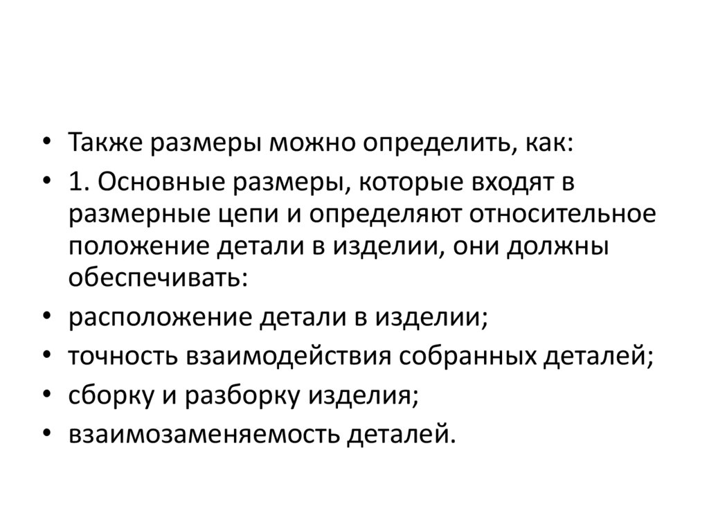 • Также размеры можно определить, как:• 1. Основные размеры, которые входят в