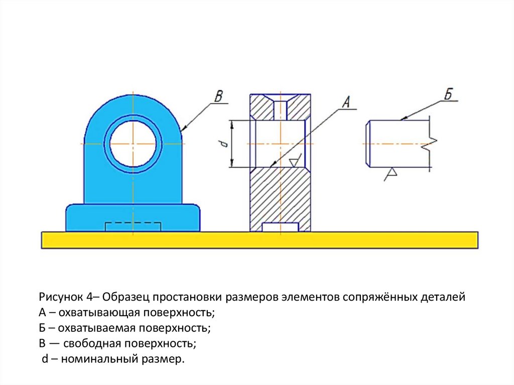 Рисунок 4– Образец простановки размеров элементов сопряжённых деталейА – охватывающая поверхность;