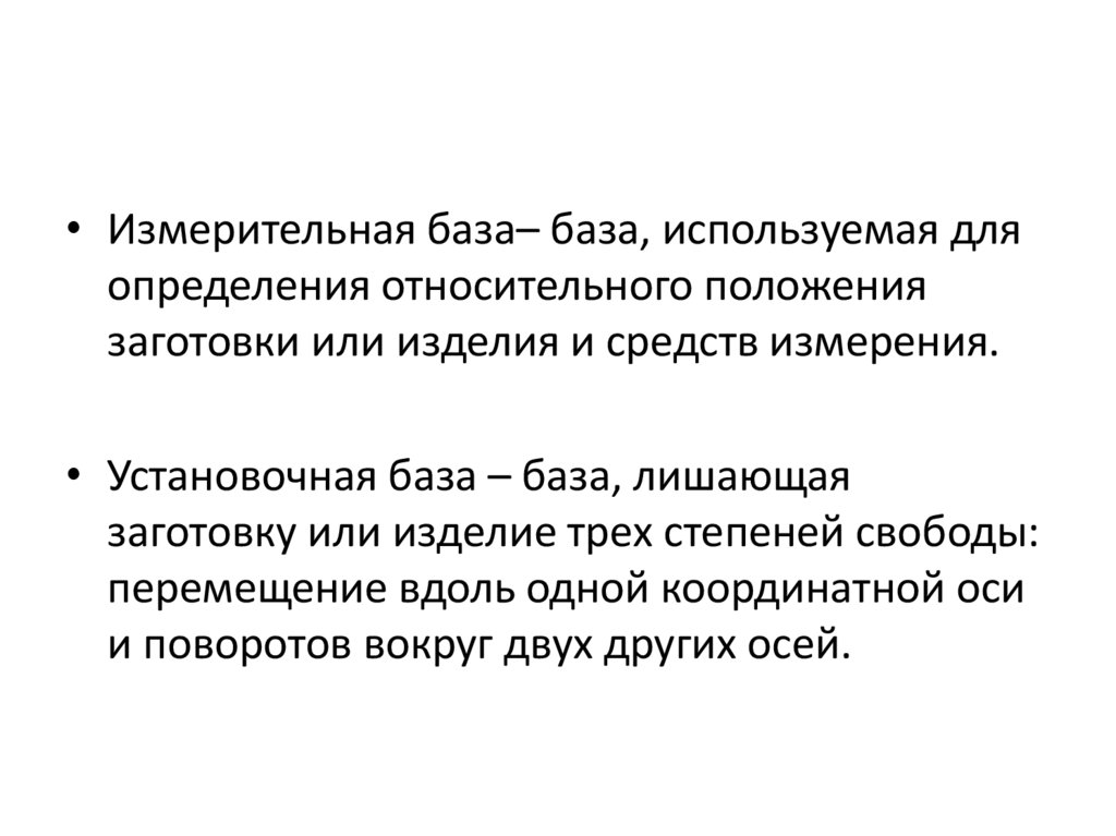 • Установочные – базы, лишающие заготовкуили изделие трех степеней свободы: