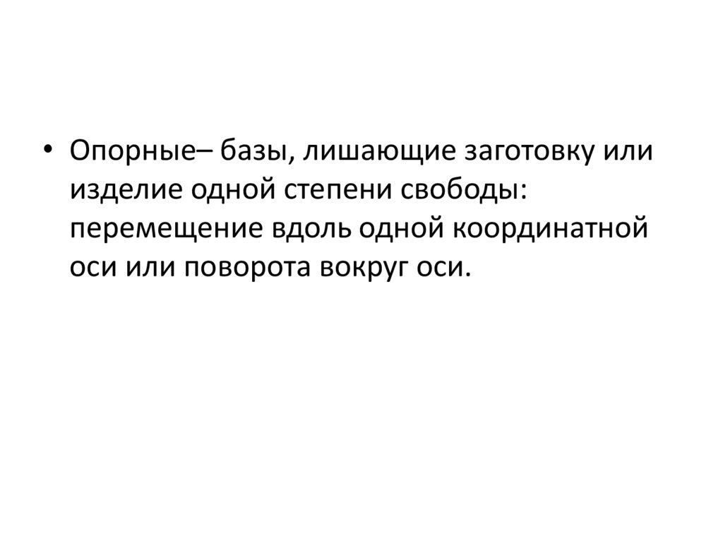 • Опорные– базы, лишающие заготовку илиизделие одной степени свободы: