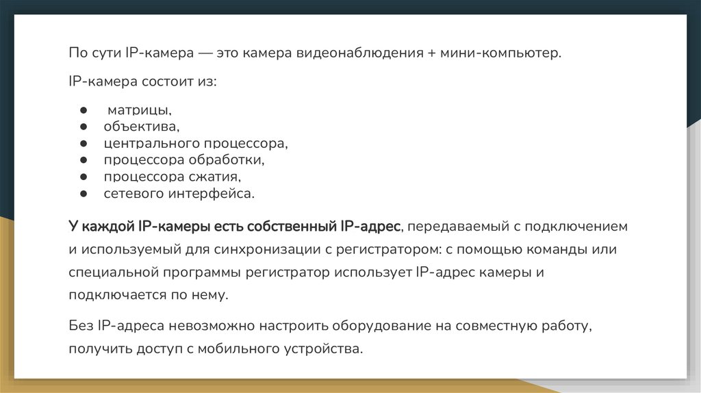 По сути IP-камера — это камера видеонаблюдения + мини-компьютер.IP-камера состоит из: