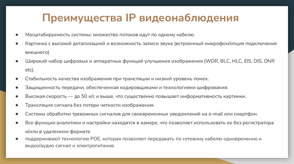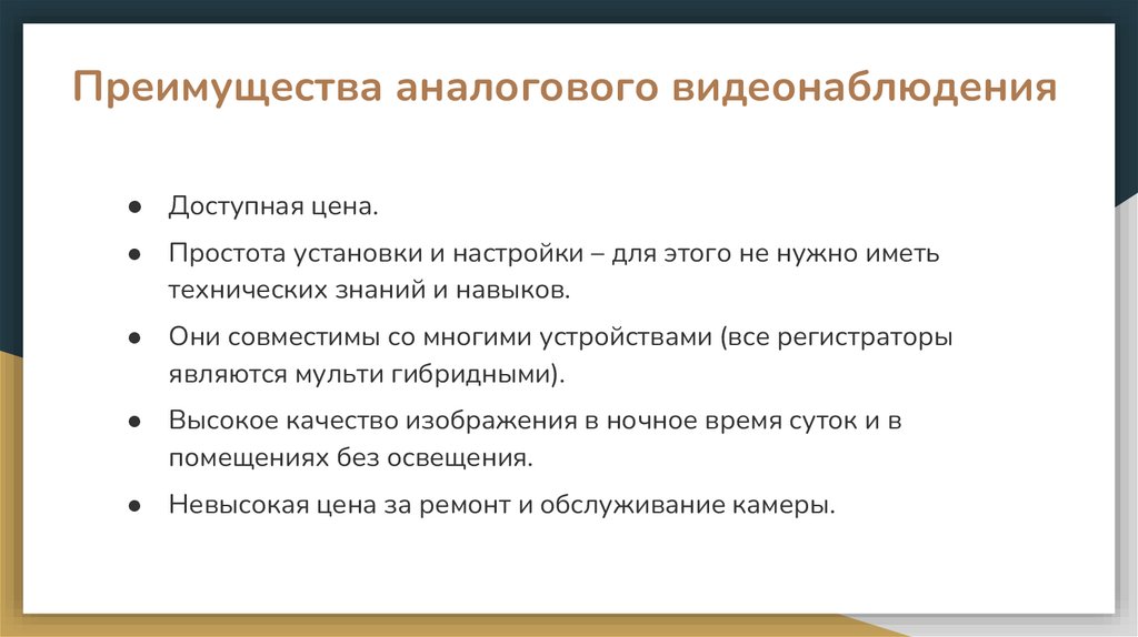 Преимущества аналогового видеонаблюдения● Доступная цена.