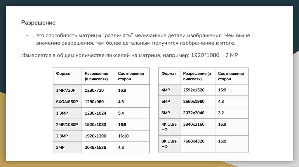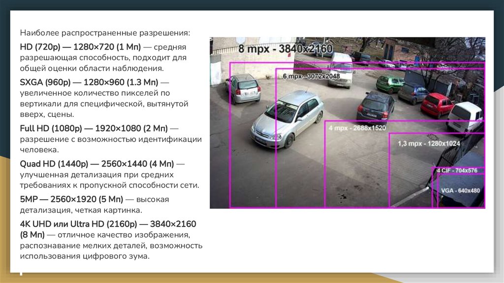 (2мп - наблюдать, 4мп - различать, 8мп - глубокая детализация)