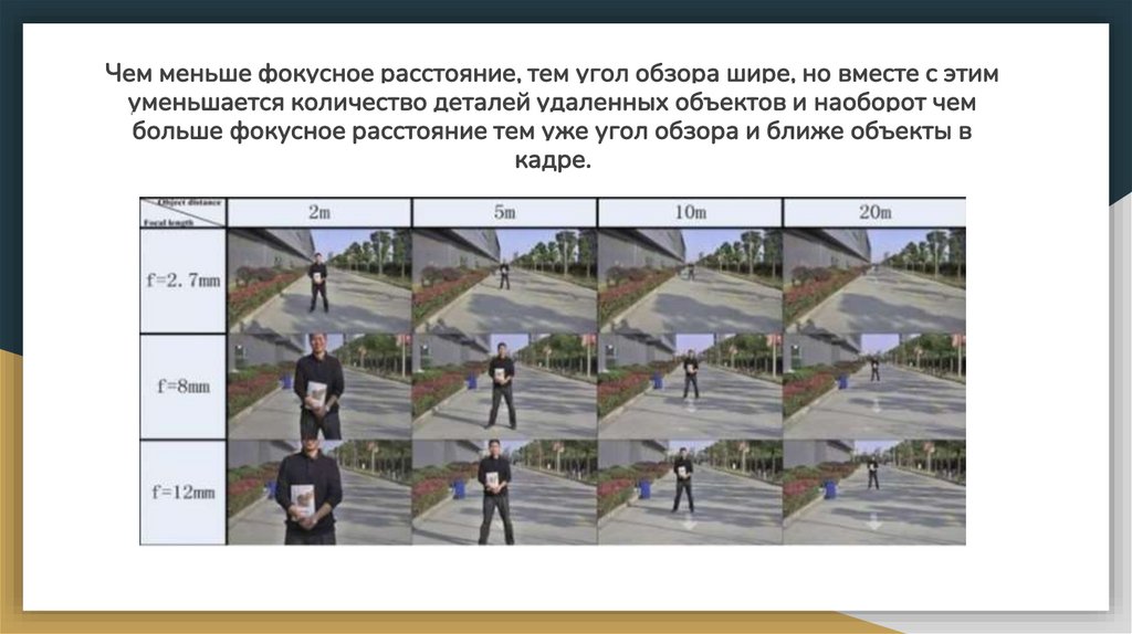 Фокусное расстояние таких объективов указывают в диапазоне от меньшего к большему (2.7 ~ 13.5, например) — его