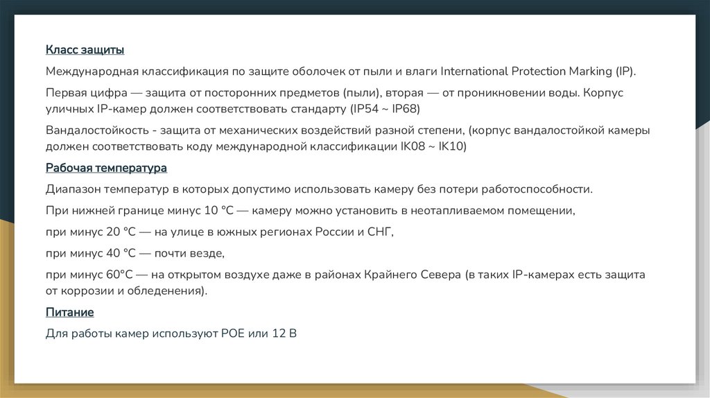 при минус 60°С — на открытом воздухе даже в районах Крайнего Севера (в таких IP-камерах есть защита