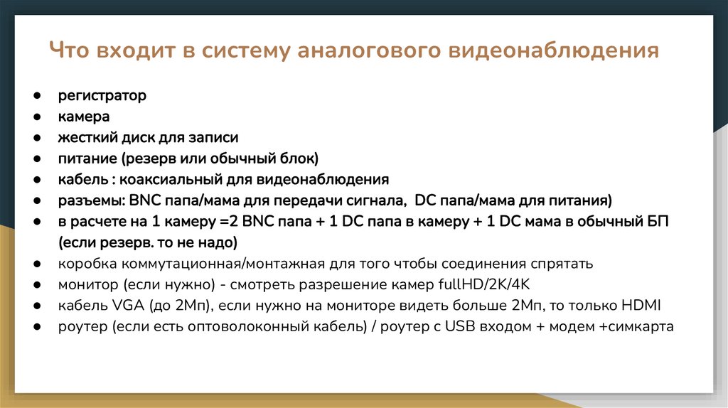 Что входит в систему аналогового видеонаблюдениярегистратор