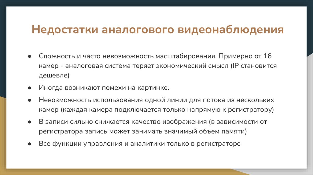 Недостатки аналогового видеонаблюденияСложность и часто невозможность масштабирования. Примерно от 16