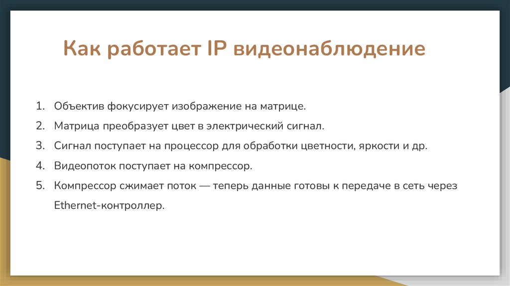 Как работает IP видеонаблюдение1. Объектив фокусирует изображение на матрице.