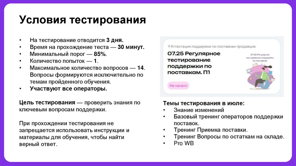 Темы тестирования в июле: