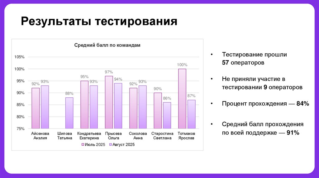 Результаты ежемесячного тестирования. Август 2025