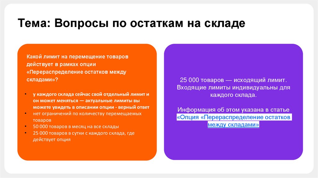 Тема: Вопросы по остаткам на складеКакой лимит на перемещение товаров