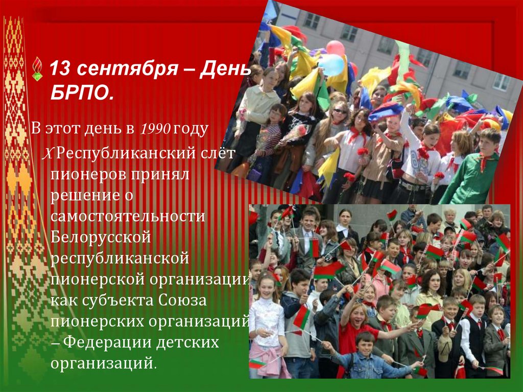 7. Белорусская республиканская пионерская организация отмечает следующие праздники:
