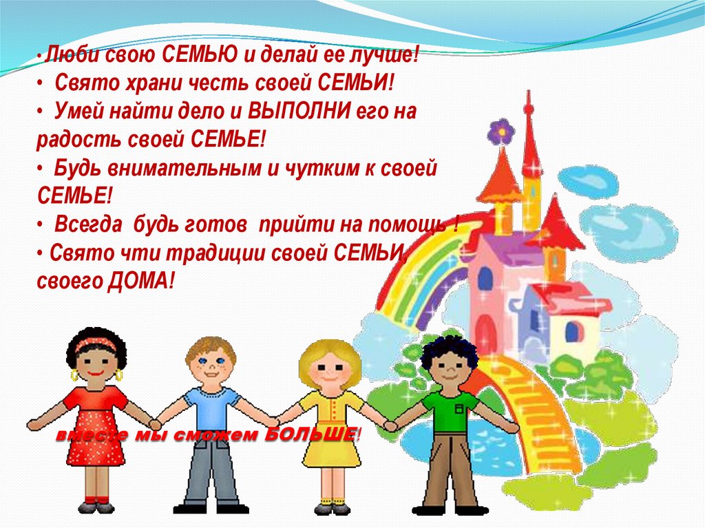 • Люби свою СЕМЬЮ и делай ее лучше!• Свято храни честь своей СЕМЬИ!