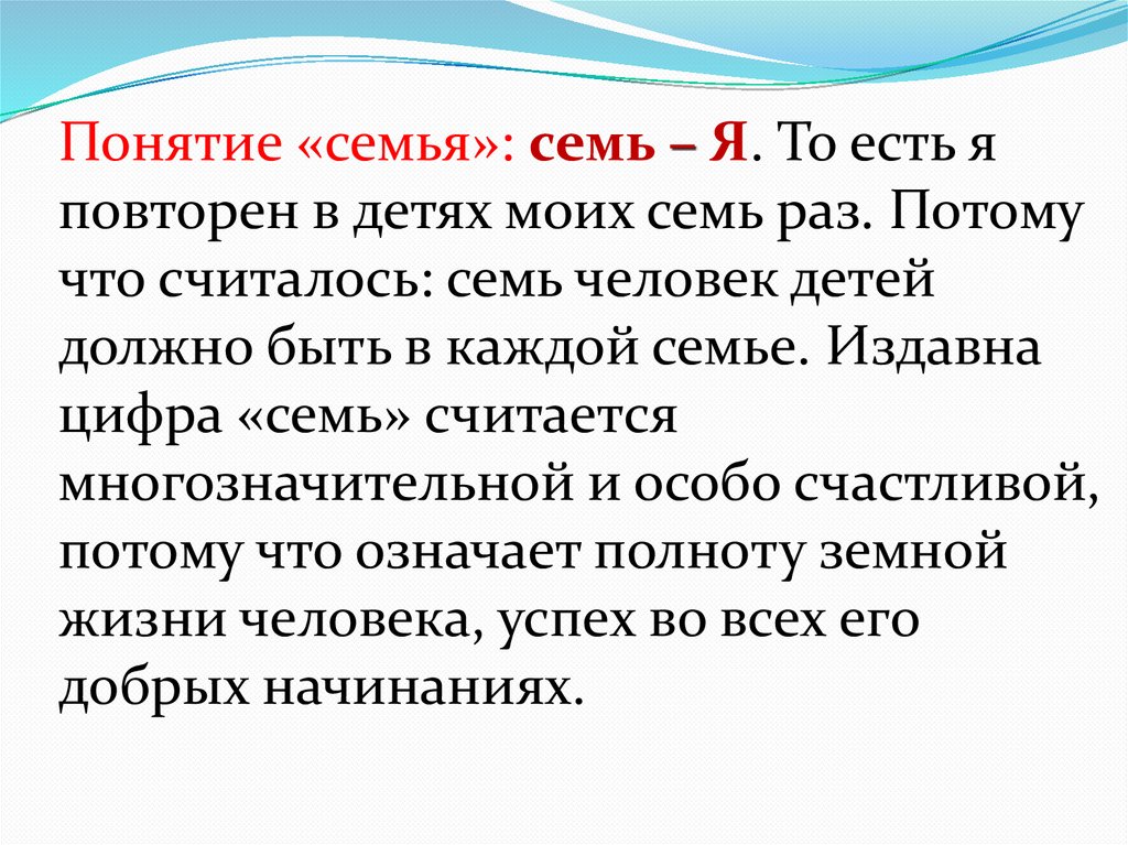 Понятие «семья»: семь – Я. То есть яповторен в детях моих семь раз. Потому