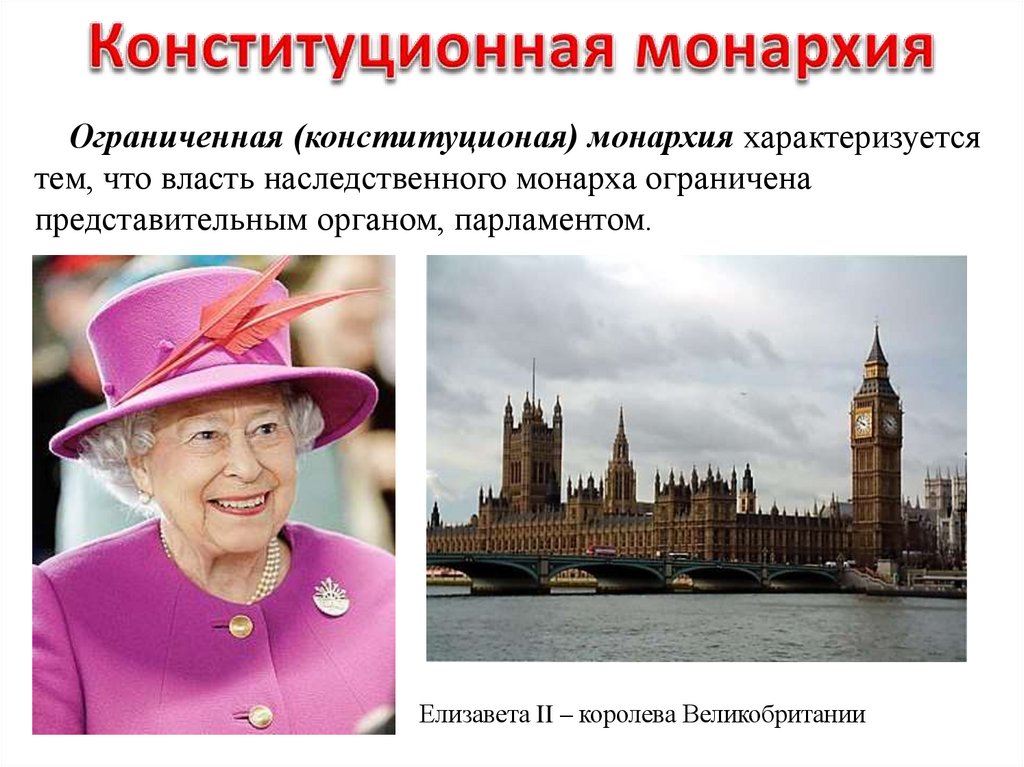 Ограниченная (конституционая) монархия характеризуетсятем, что власть наследственного монарха ограничена