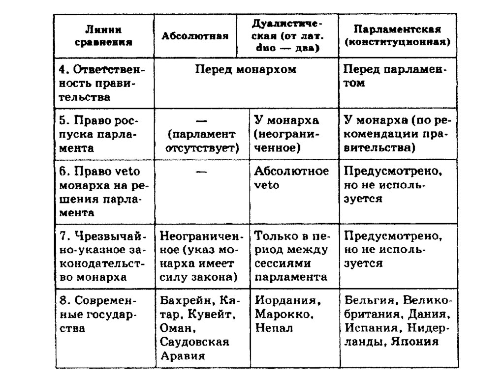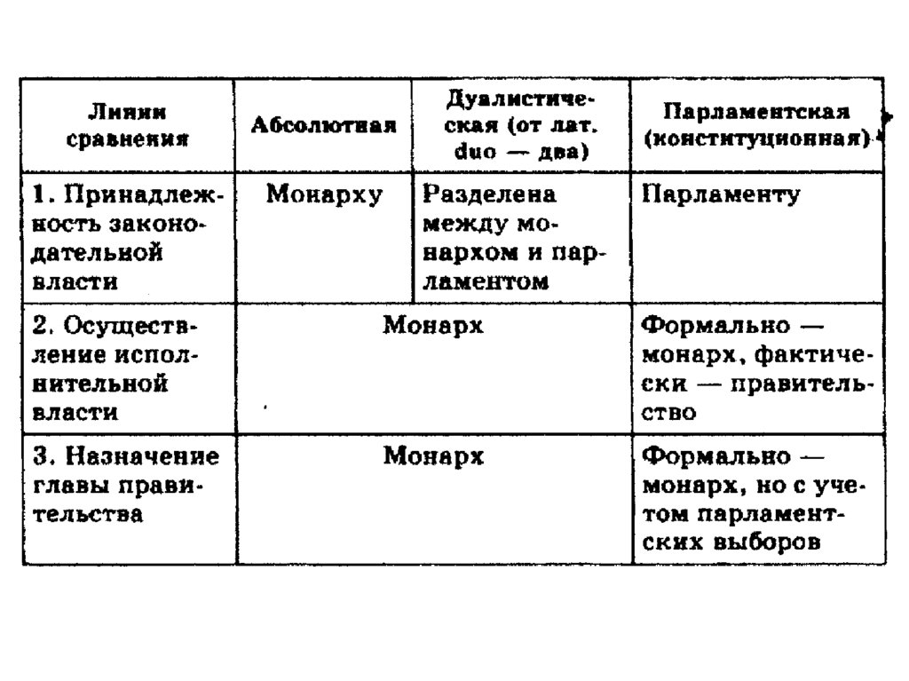 Дуалистическая монархия характеризуется тем, что парламентупринадлежит законодательная власть, а монарх возглавляет