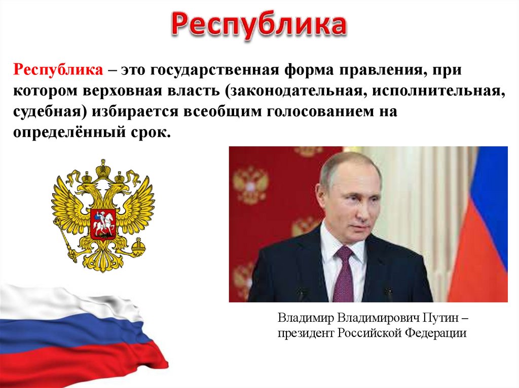 Республика – это государственная форма правления, прикотором верховная власть (законодательная, исполнительная,