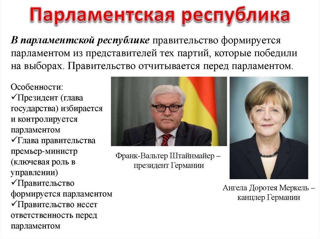 В парламентской республике правительство формируетсяпарламентом из представителей тех партий, которые победили