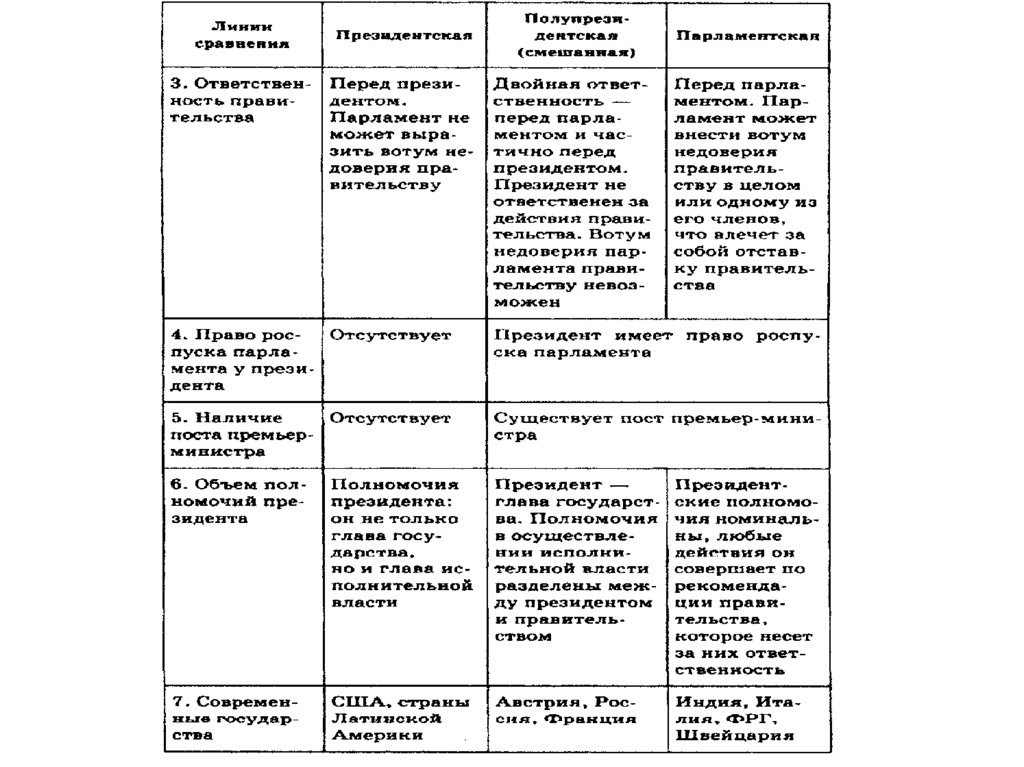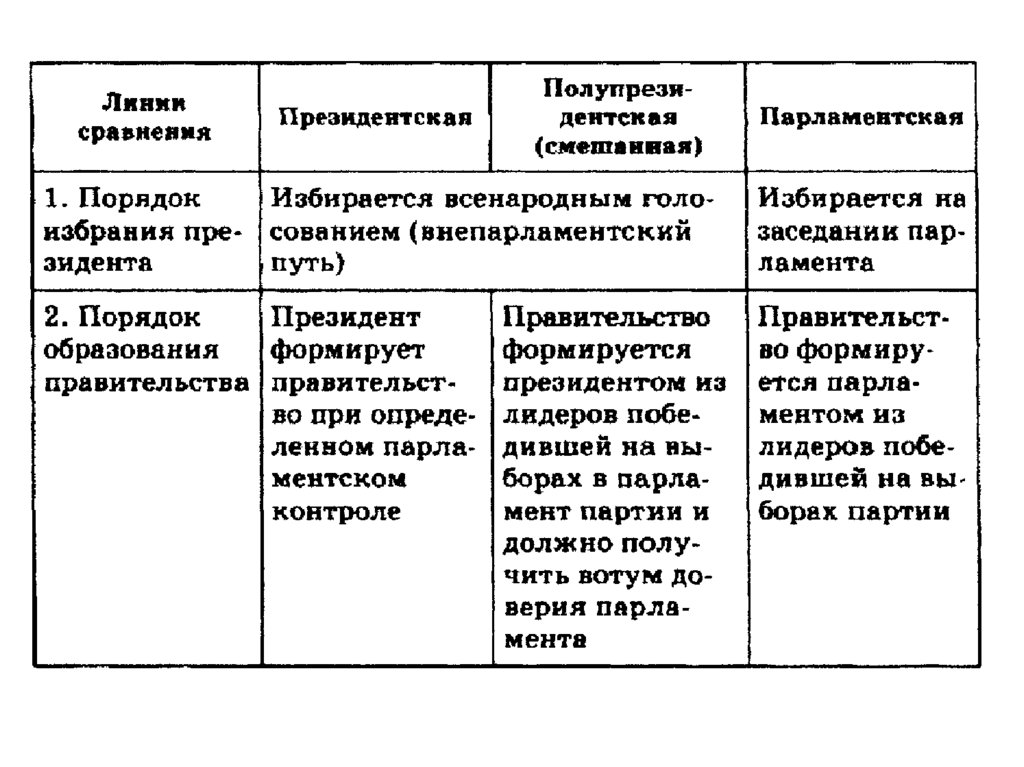 В смешанной (полупрезидентской) республике присутствуютчерты и президентской и парламентской республик. Здесь имеется