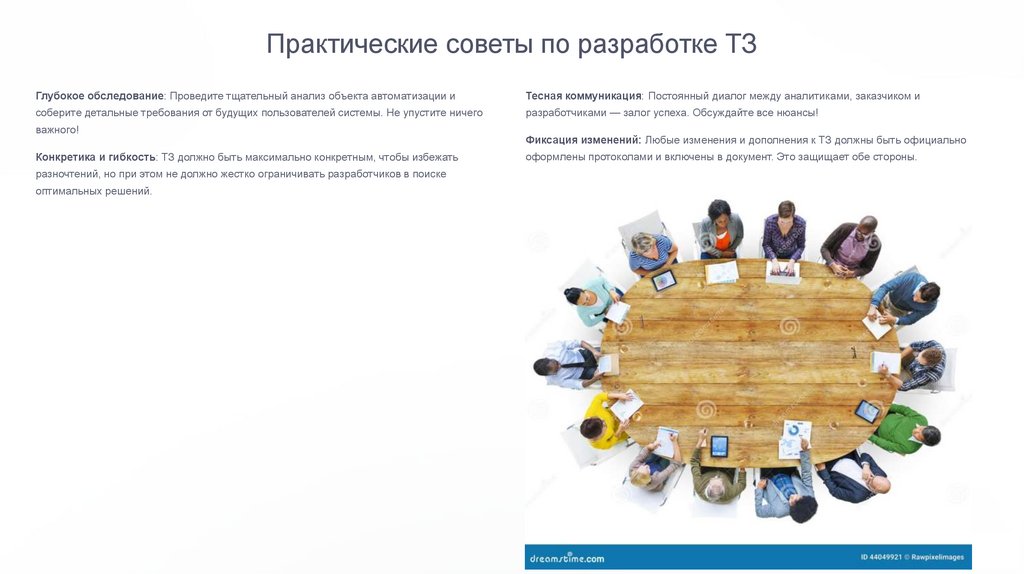 Практические советы по разработке ТЗГлубокое обследование: Проведите тщательный анализ объекта автоматизации и