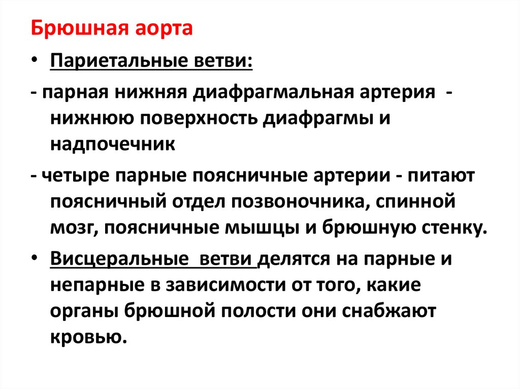 Брюшная аорта• Париетальные ветви: