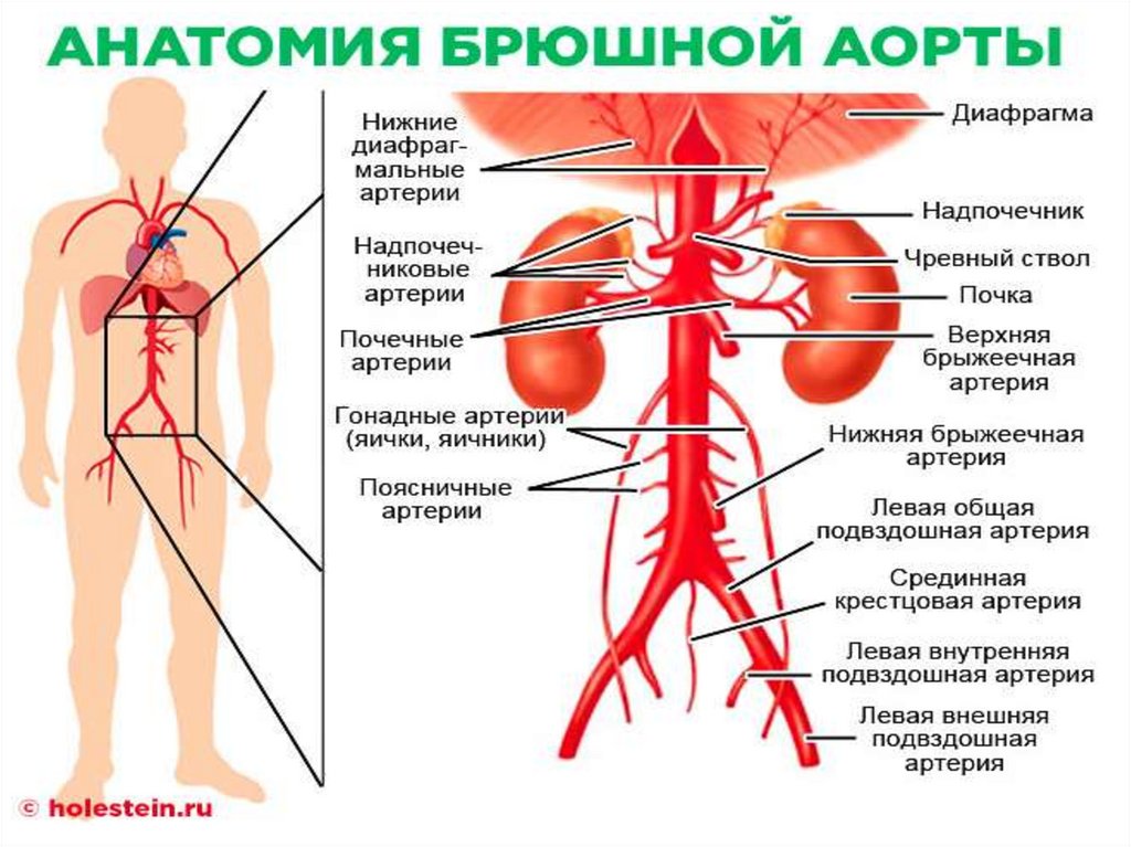 ветви: общие подвздошные артерии, каждая