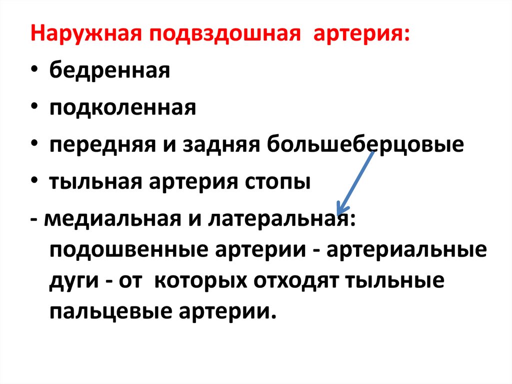 • Наружная подвздошная артерия - ко всей