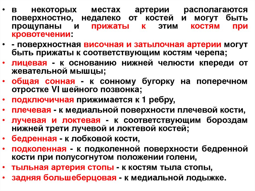 защищенных местах, а артерии конечностей на сгибательных и медиальных поверхностях.