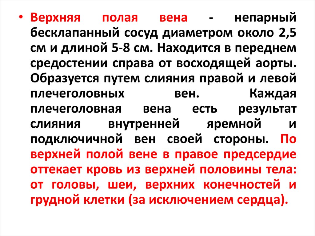 оттекает кровь из верхней половины тела: