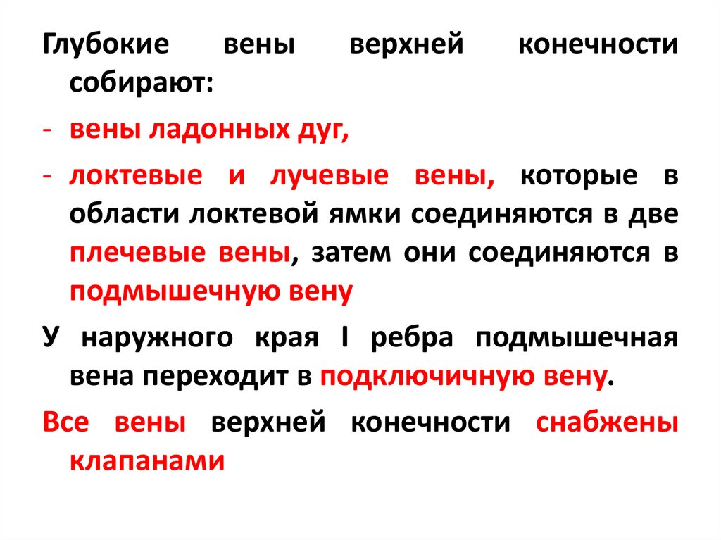 - локтевые и лучевые вены, которые в