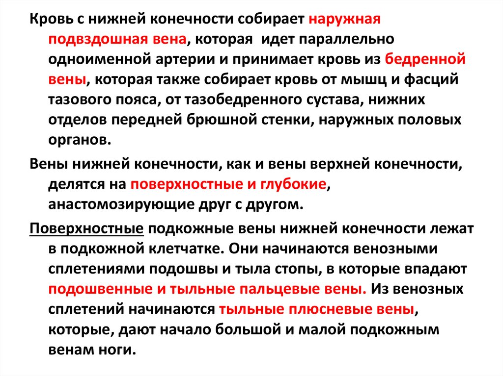 Кровь с нижней конечности собирает наружнаяподвздошная вена, которая идет параллельно