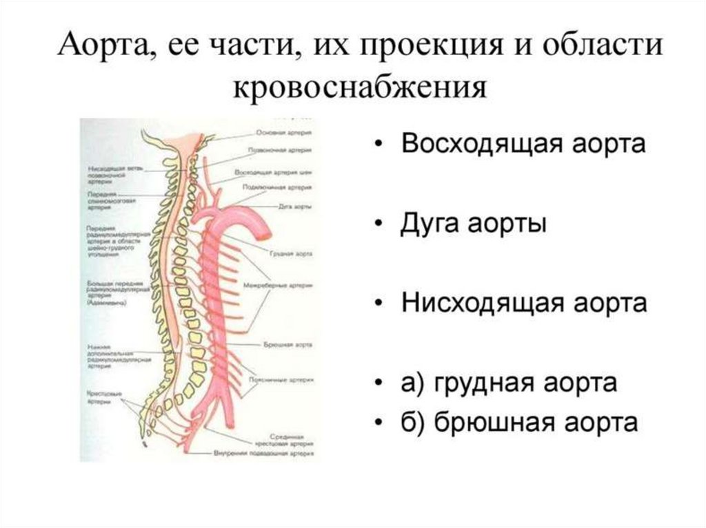 грудную и брюшную части аорты.