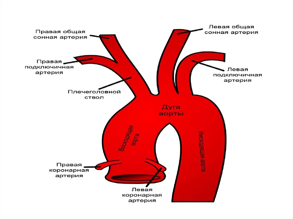 тела. Выходит из левого желудочка и