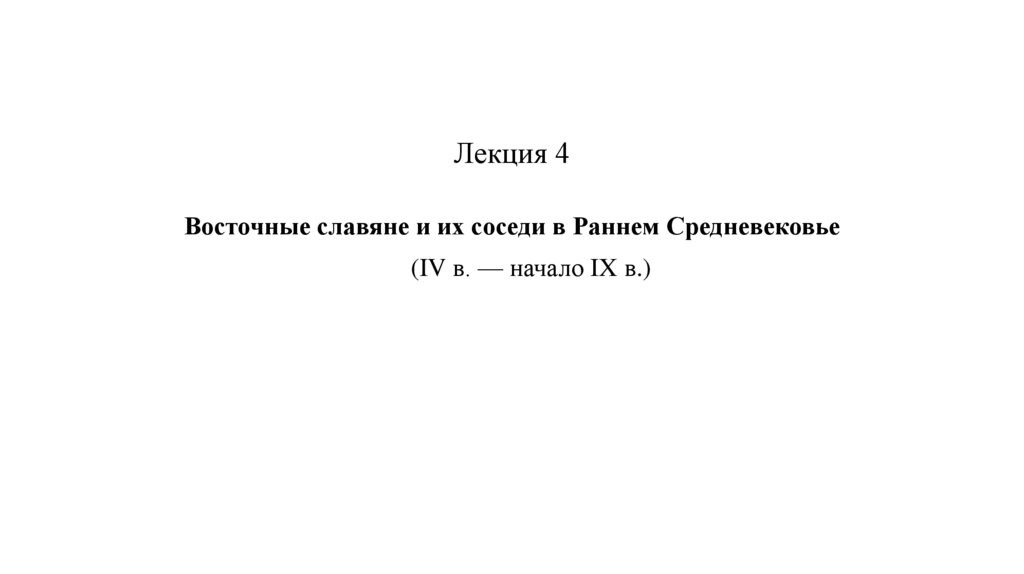 Восточные славяне и их соседи в Раннем Средневековье (IV в. - начало IX в.). Лекция 4