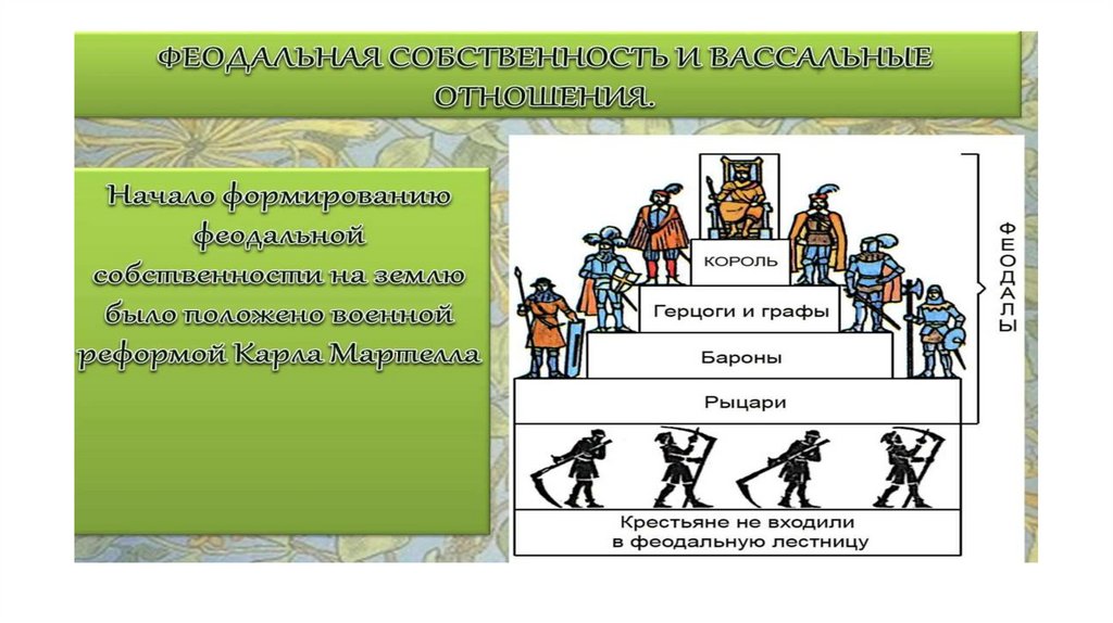 • собственники земли (феодалы – духовные и светские) и держатели земли - крестьяне.