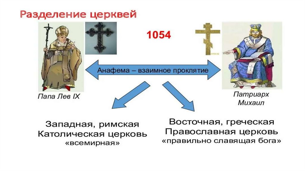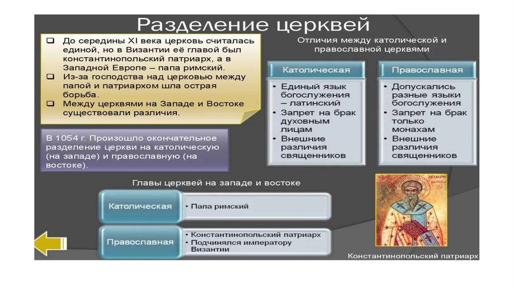 • Христианская церковь, ее централизация, иерархия и богатство, ее миропонимание, право, этика и
