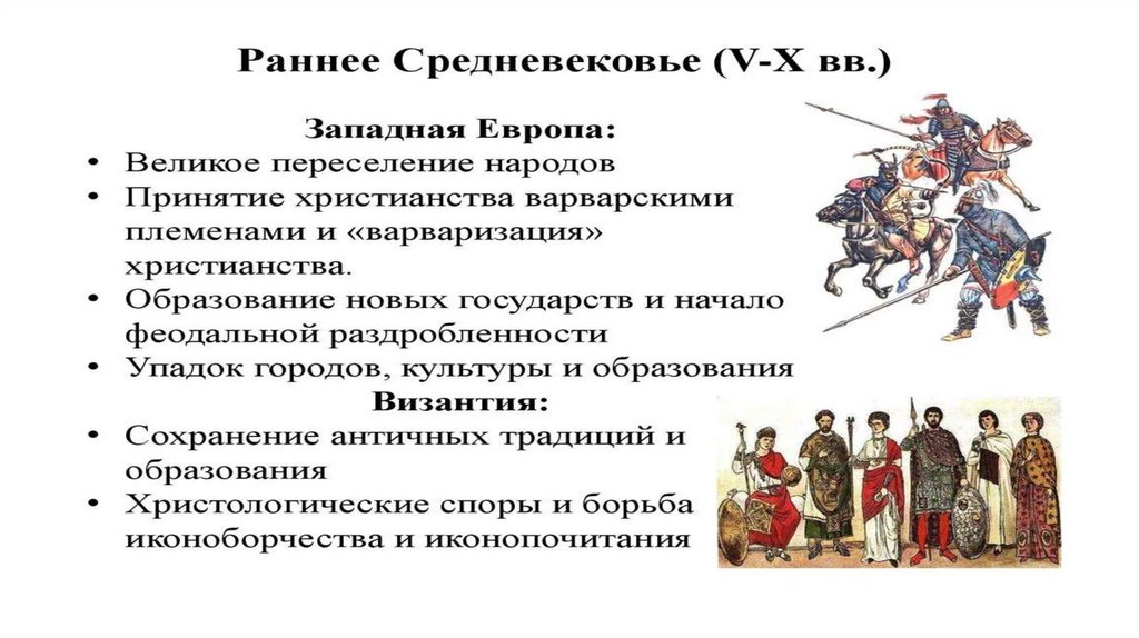 • Раннее Средневековье — V в. — начало XI в.