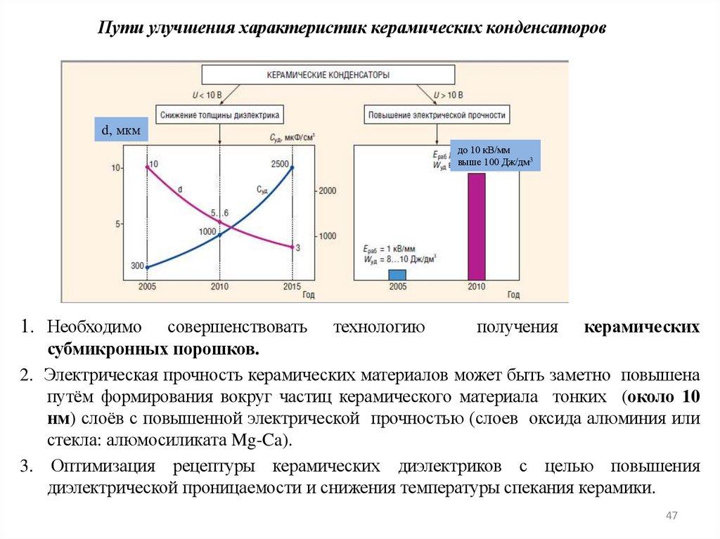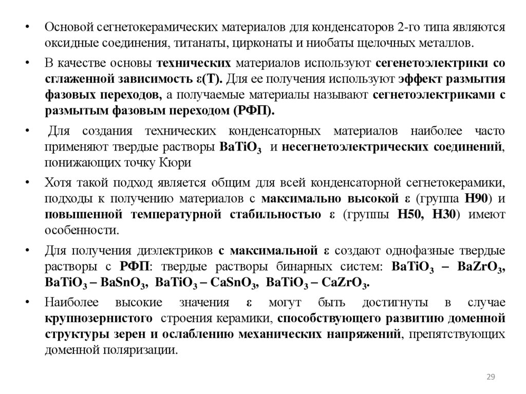 Могут сочетать высокое значение ε (>100), низкое значение tgδ и высокое значение
