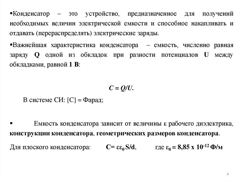 Конденсатор – это устройство, предназначенное для полученийнеобходимых величин электрической емкости и способное накапливать и
