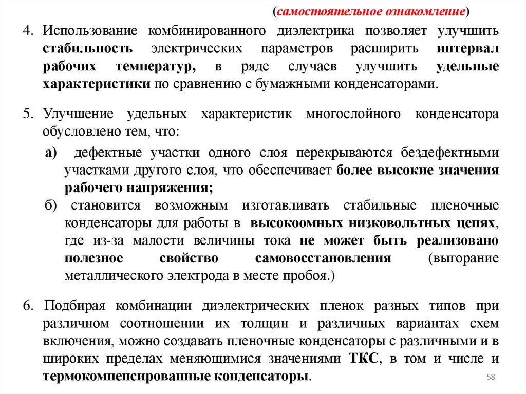 (самостоятельное ознакомление)4. Использование комбинированного диэлектрика позволяет улучшить