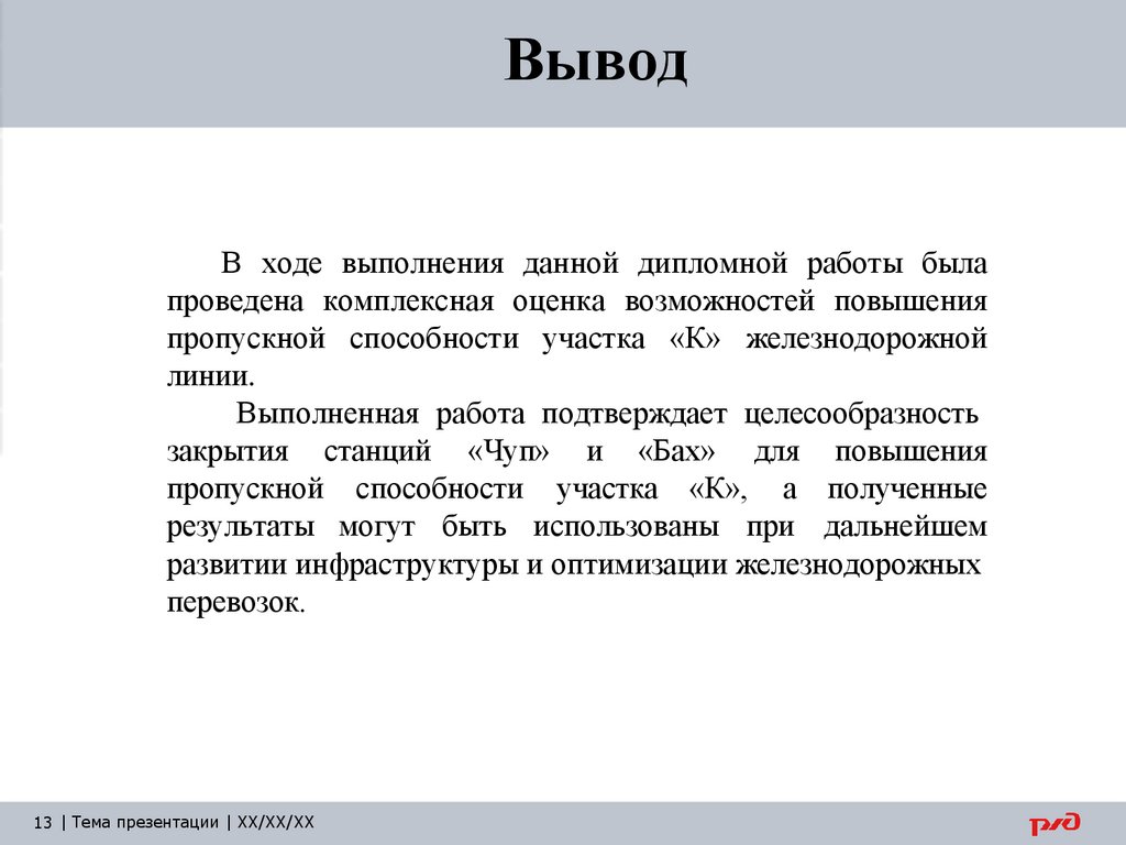 Дипломный проектТема: Улучшение пропускной способности участка «К»